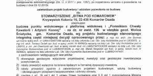 Z dumą informujemy o uzyskaniu pozwolenia na budowę Pomnika Chwały Kawalerii i Artylerii Konnej. Nadchodzący rok 2019 będzie stał pod znakiem gromadzenia funduszy i realizacji tego przedsięwzięcia. Tekst pozwolenia