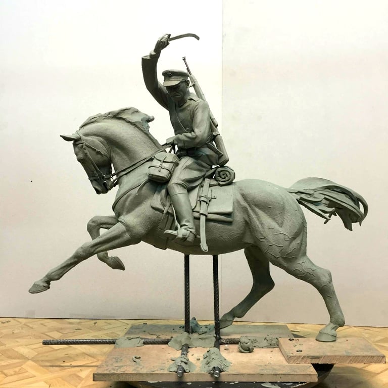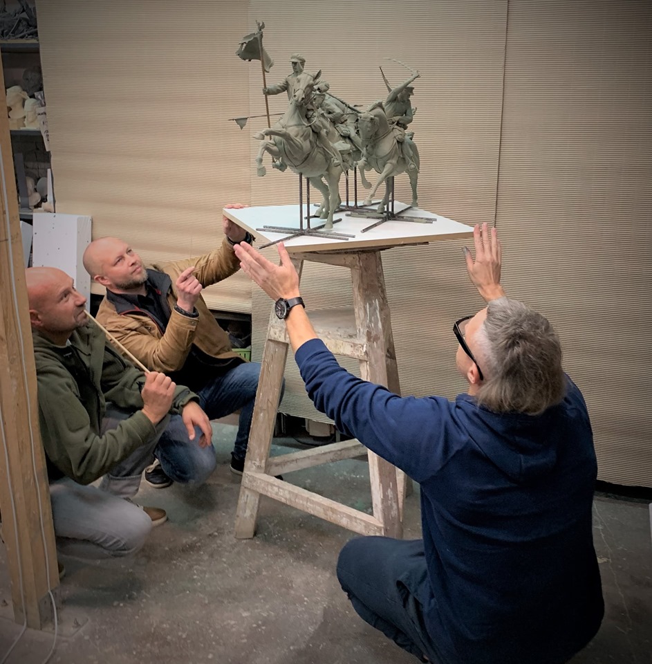 Pracujemy nie próżnujemy. Projekt rzeźby jeźdźców do pomnika „CHWAŁY KAWALERII I ARTYLERII KONNEJ”. RZEŹBA - Artur Wochniak i Tomek Radziewicz . Wspierajcie budowę pomnika !!! to podziękowanie dla polskich kawalerzystów którzy walczyli o naszą Polskę. To także hołd dla ich pracy na rzecz polskiego jeździectwa. To za ich sprawą powstała polska szkoła jazdy, Polski Związek Jeździecki !!! jesteśmy im to winni.
