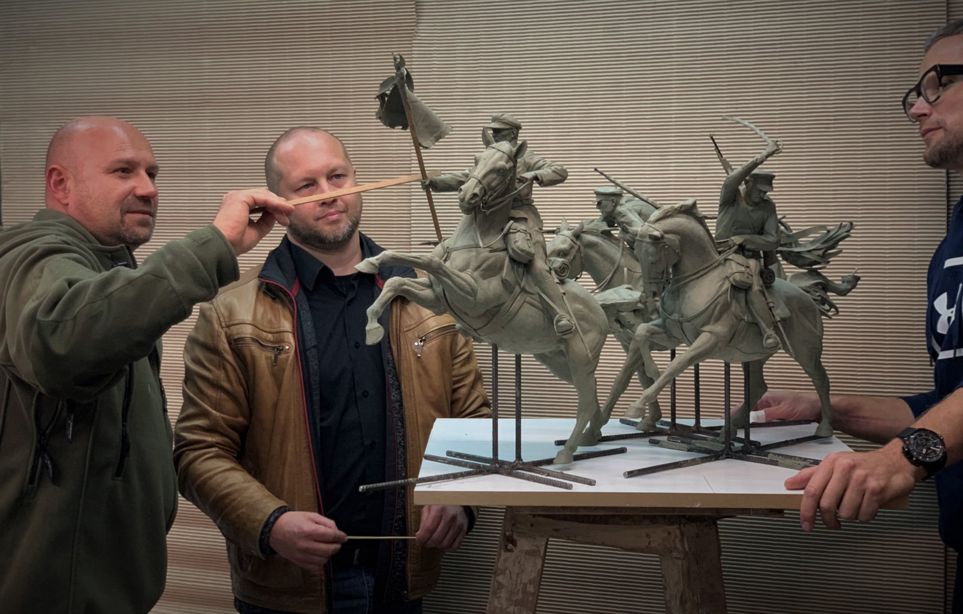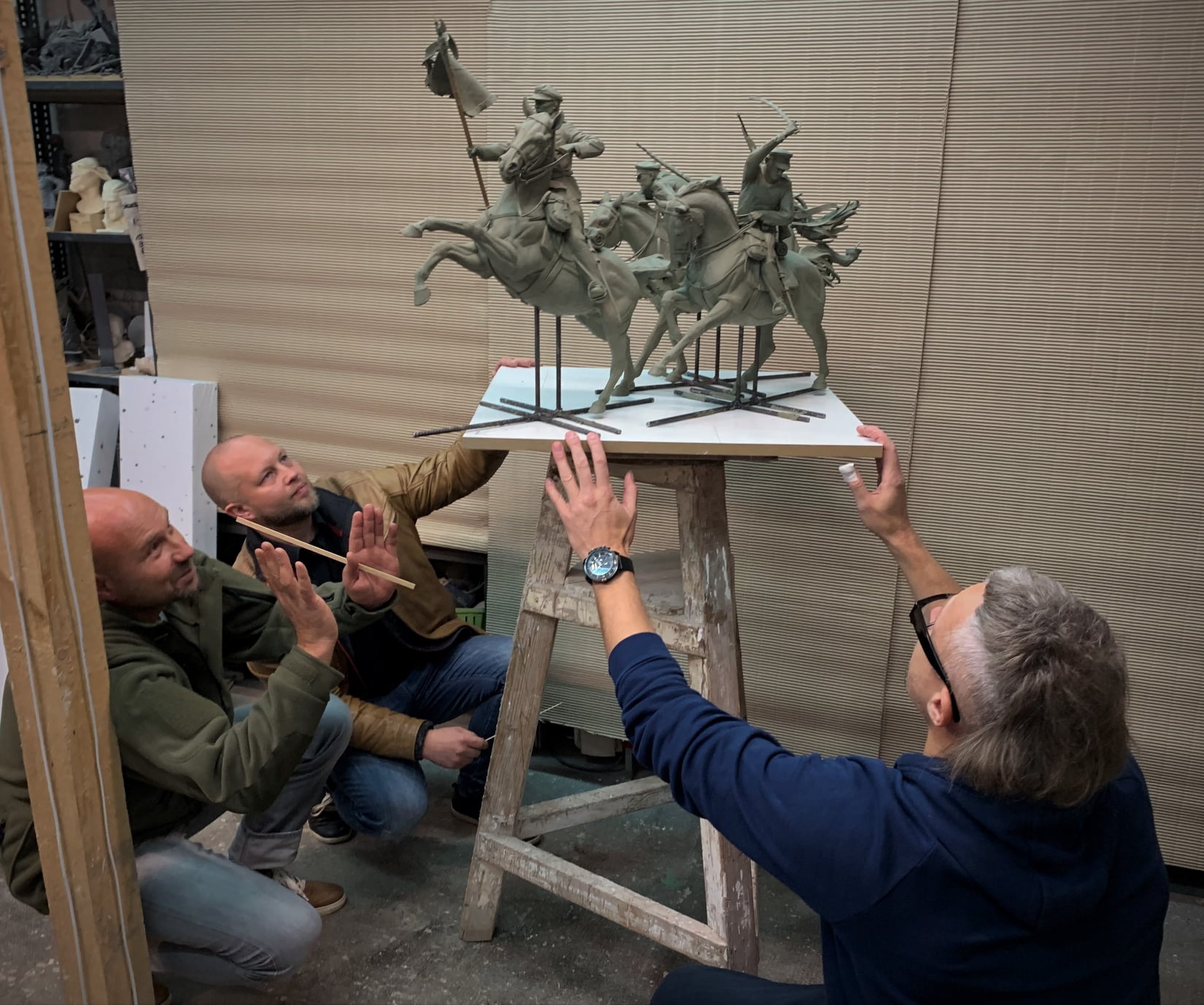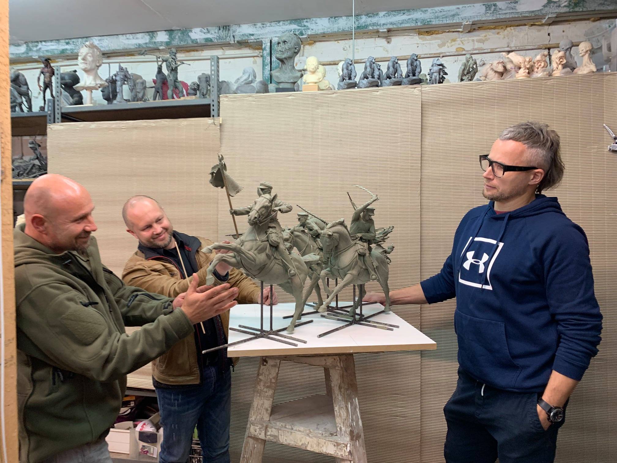Kolejny etap - wizyta w Gdańsku w pracowni rzeźby Tomasz Radziewicz Sculptor i konsultacje modelu rzeźby kawalerzystów z autorami Artur Wochniak i Tomasz Radziewicz Sculptor. Załączone zdjęcia nie oddają niesamowitego efektu jaki prezentuje model.