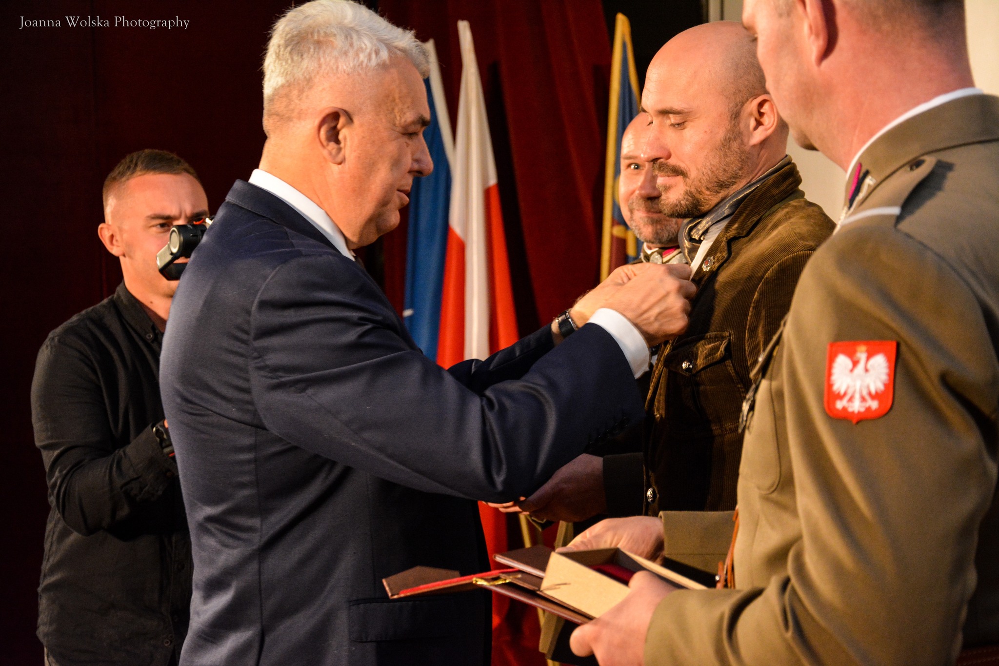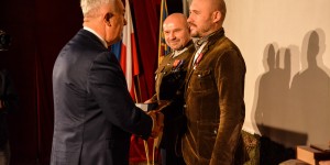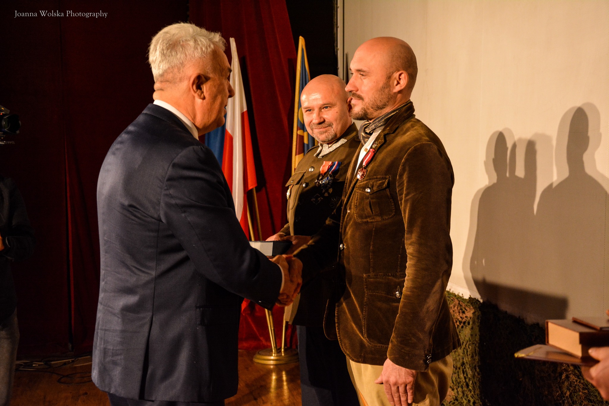 W imieniu Ministra Kultury i Dziedzictwa Narodowego prof. Piotra Glińskiego Pan Sławomir Zawiślak Poseł na Sejm RP dokonał aktu dekoracji Srebrnym Medalem „Zasłużony Kulturze Gloria Artis” Tomasza Dudka oraz Brązowym Medalem „Zasłużony Kulturze Gloria Artis” Konrad Głuchowskiego - twórców projektu pomnika za upowszechnianie i ochronę dziedzictwa polskiej kawalerii.